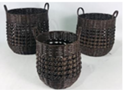 Set of 3 Nested Wicker Baskets, 70% Resin Ricker, 30% Wire.